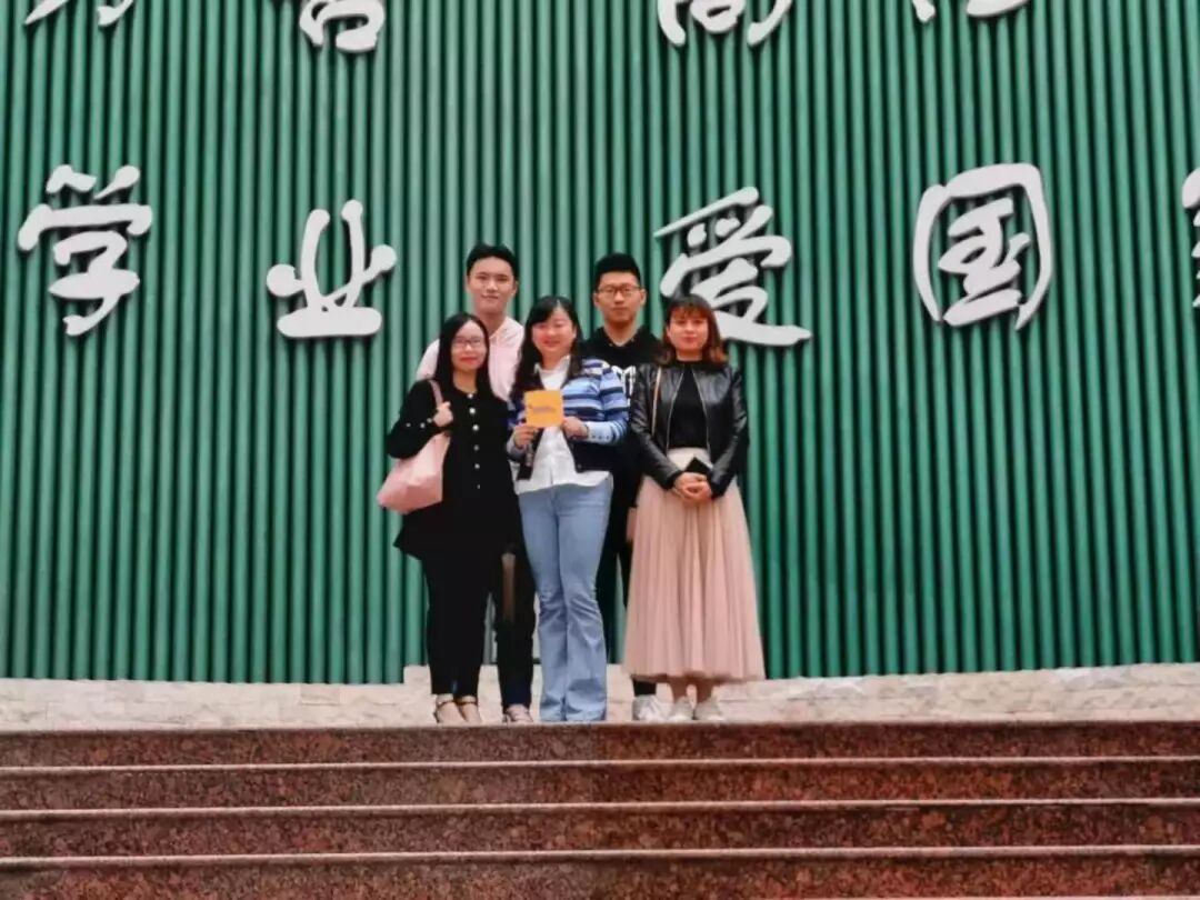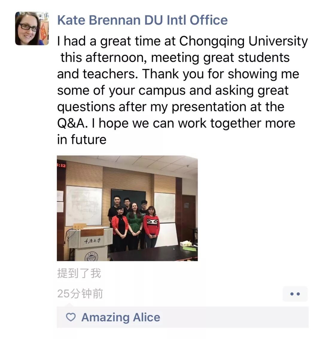 Elan(左一)在重庆大学B区与国际预科中心老师、学生代表合影