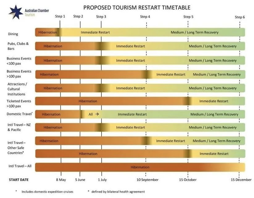 根据最新消息,澳大利亚旅游部的恢复旅游工作组发布了一个国际旅行解封时间表,包含了澳洲开放边境的具体时间: